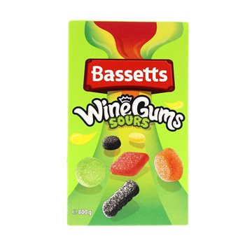 Se garantiza el agua la boca cuando abres esta bolsa de Bassett's Sour Winegums. La bolsa contiene 800 g de chicle de vino inglés con un toque; Cuelas de vino agrias y coloridas con azúcar con un mordisco duro y un sabor fresco.
