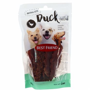Il migliore amico Bites Natural Bites Duck Fillet con filetto d'anatra è uno spuntino delizioso per il tuo cane. Il filetto di anatra per morsi naturali del migliore amico può essere somministrato quotidianamente come snack e ricompensa di comfort salutari, che dà al tuo cane denti più forti e gengive più sane.