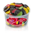 Benna gomma da vino di Red Band. Qui ottieni una scatola da 1200 g piena di deliziose gengive di vino di qualità e liquirizia. Nella speciale versione "Zombie Smile", ottieni le faccine rotonde, ma questa volta con una miscela di deliziosa liquirizia e delicata gomma da vino di frutta. Due belle metà che in combinazione creano un pezzo di gustosa caramella.
