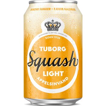 From Tuborg, this Squash soft drink comes in a version that does not have added sugar. the soda has sparkling fizz and the well-known, sweet taste of ripe oranges. The frame here contains 24 cans of 0.33 cl in each can.