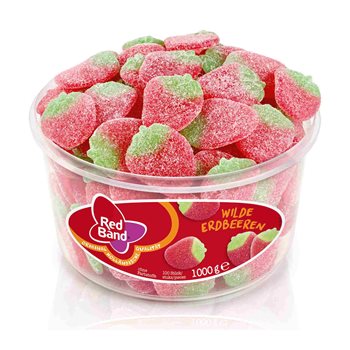 Red Band Strawberry este o gumă delicioasă și dulce de vin de căpșuni, care este presărată cu zahăr. Red Band este un brand de bomboane cunoscut pentru numeroasele lor gingii de vin și lichioruri diferite. Acest lucru este exprimat și în această găleată, care constă din gingii minunate de vin de căpșuni. Puteți utiliza în mod avantajos această gumă de vin împreună cu alții într -un bol cu bomboane. Can conține 950 de grame de gumă de vin.