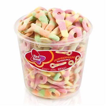 Suite de cauciuc delicat de vin din banda roșie. Suzetele sunt multicolore și confiate cu zahăr. Culorile reprezintă arome diferite, motiv pentru care nu obțineți doar o singură aromă, ci mai degrabă multe dintr -o singură tetină de gumm de vin. CAN conține 900 de grame, ceea ce este aproximativ echivalent cu 100 de suzete gumă de vin.